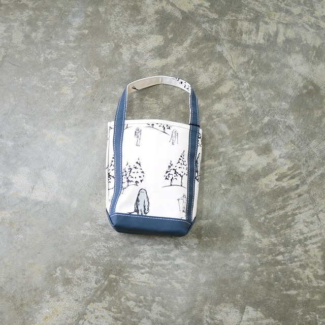 お財布や携帯など必要最低限の持ち物が入るミニサイズのトートバッグ。袋口には巾着が付いているので、荷物を多めに入れても安心して使えます。 こちらは、ユーモラスなYETI(雪男)柄。BIG FOOTとも呼ばれているので、よく見ると大きな足跡が描かれているのもかわいらしいポイント。 品番:TMB-2225N 生産国:日本 素材:コットン100% カラー:YETI/SMOKY-BLUE 高さ:17cm 横幅:17cm 奥行:13cm お手入れ方法:手洗い可 備考:生地の裁断により、絵柄の場所は一点ずつ異なりますがお選びいただけません。 TEMBEA テンベア 2004年にスタートしたバッグブランド、TEMBEA(テンベア)。例えば、バゲット、本、おもちゃを入れるためのもの。新聞、教科書、野菜を運ぶためのもの。入れる物や用途が決まっているバッグを提案しています。バッグには主にキャンバス生地を使用し、その無機質さ、素朴さ、デザイン性を意識した物作り。使い込むほどにやわらかい表情へ変化し、使う人の体になじんでいくことも特長。バッグは基本、仕切りもポケットもない。物を決められた場所に収める便利さではなく、なにも決めつけない自由な使い勝手、自由の心地よさをスタイルとしています。テンベアとは「放浪」という意味。持つことによりどこかに行きたくなる。場所も時代も選ばず、普遍的な美を追求する道具としてのバッグ作りを続けています。