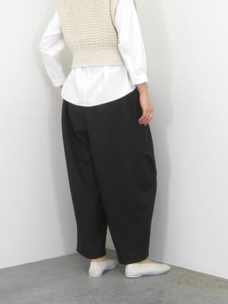 ルーズなシルエットが印象的なワイドパンツ。膝部分にはタックを施し、丸みのあるシルエットを演出しています。ウエスト部分をゴム仕上げにしリラックスした穿き心地も魅力的。シーズンを問わずにお使いいただけ、自然とどんなトップスにも合わせることの出来るおすすめの一本です。