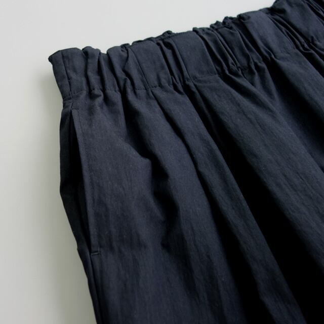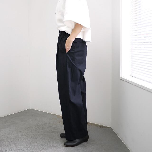 ゆったりとしたシルエットでイージーな履き心地の2タックワイドパンツ。ウエストは太ゴム仕様でトップスインした時にもスッキリと見えます。色々なスタイリングに応用可能な着回し力抜群のパンツです。