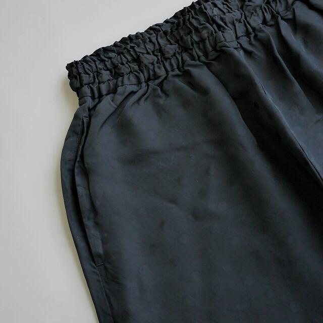 さりげない光沢感が魅力のセミワイドパンツ。キュプラのドットジャカード素材を使用した、涼やかで軽やかな履き心地の一本です。控えめな光沢とシャドードット柄が上品なニュアンスを演出し、ほんのりシワ感のある質感がこなれた印象をプラスします。ウエストはゴム仕様でストレスフリーな穿き心地。