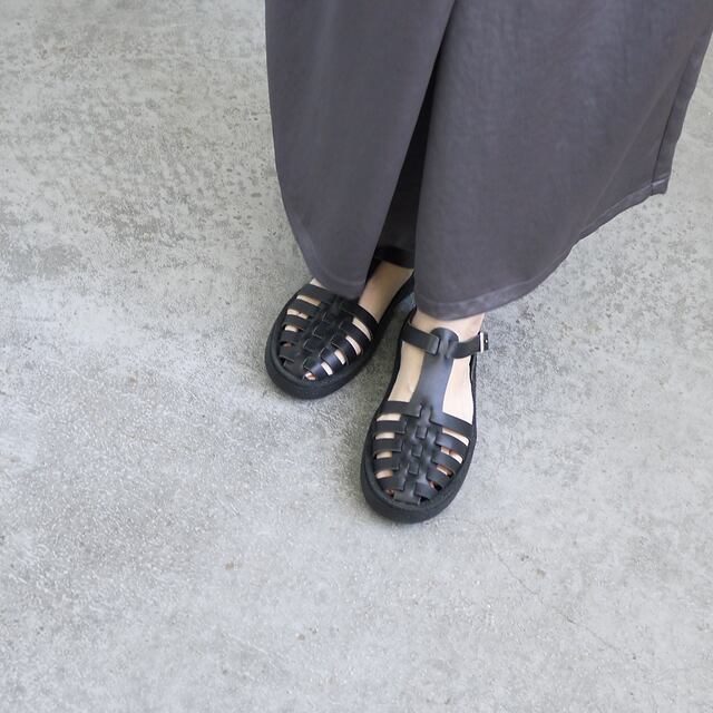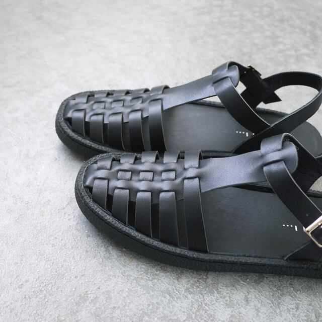 抜け感と上品さを兼ね備えた、大人のグルカサンダル。フラットでリラックス感のあるデザインながら、安定感のあるソールで歩きやすさにも定評のある一足。甲を覆う編み込みレザーバンドが上品なアクセントとなり、ほんのり丸みを帯びたシルエットが足元に女性らしさを添えてくれます。カジュアルな装いにもきれいめスタイルにもマッチし、春夏のワードローブに取り入れたい万能サンダルです。