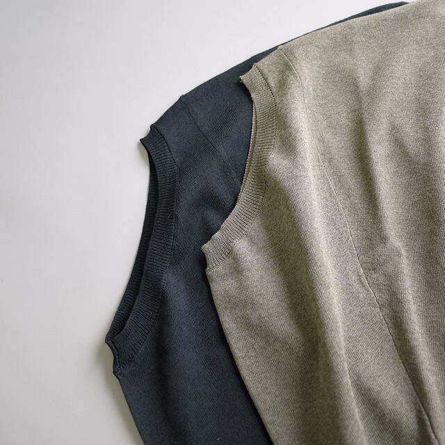 ミズイロインドらしい繊細で上品な雰囲気が魅力のコクーンシルエットベスト。今期は定番のコクーンベストをシアーなニット素材でアップデート。14ゲージの細かな編み地が、軽やかで洗練された印象を与えます。丸みを帯びたワイドなフォルムが程よい抜け感を演出し、体のラインを拾いにくいため、リラックス感がありながらもきちんと感のある着こなしに。レーヨン混のドライタッチ素材で、さらりとした涼しい着心地も嬉しいポイント。ご自宅でお洗濯も可能で、お手入れも簡単です。