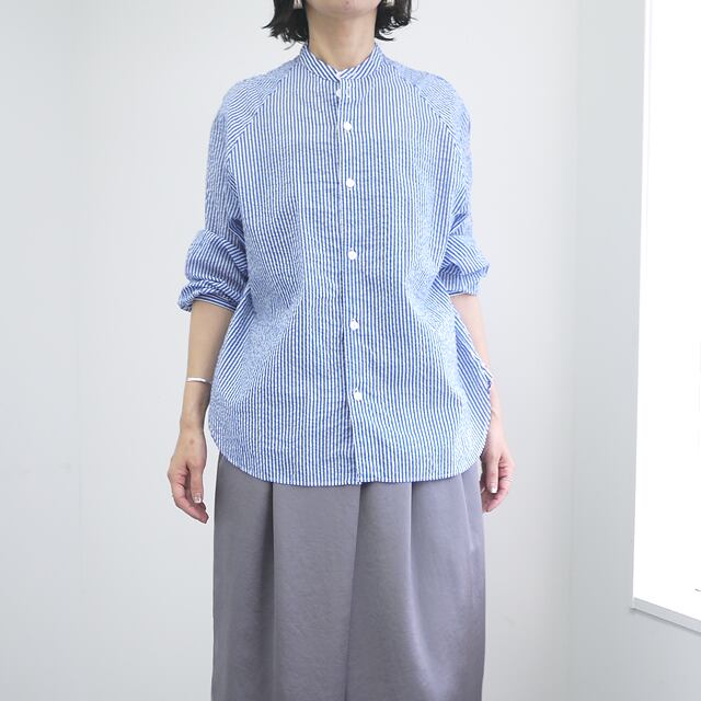 FIRMUM(フィルマム) 1/80スターチコットンストライプローンスタンドカラーラグランスリーブシャツ[LE-FR1202SF]