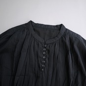 柔らかく軽い肌触りのコットンボイル生地は、程よい透け感と柔らかな表情が魅力。裏地付きなので1枚でさらりと着こなせるのはもちろん、パンツとのレイヤードスタイルもおすすめです。