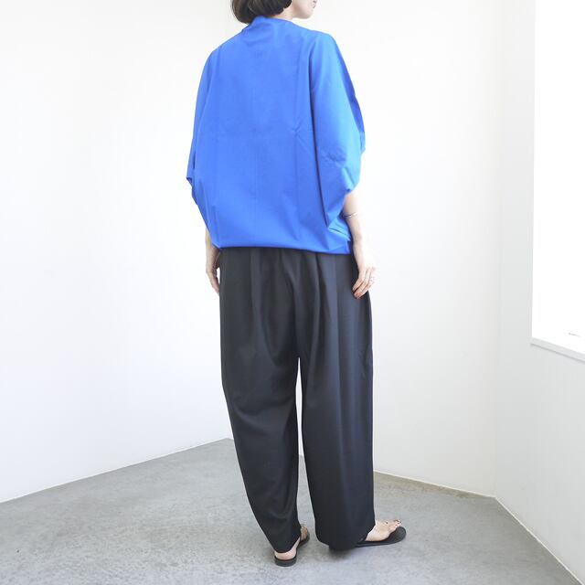 清涼感のあるコットン100%素材を使用した、着心地の良いプルオーバー。Tシャツのように気軽に着られるラフさと、立体感のあるコクーンシルエットが魅力の一枚です。動きのあるシルエットは、合わせるボトムを選ばず、デイリーコーディネートに取り入れやすいのもポイント。シンプルながらもどこか個性を感じるデザインで、ミズイロインドらしいニュアンスを楽しめます。ご自宅でのお手入れも簡単で、長いシーズン活躍してくれる頼れるベーシックアイテムです。