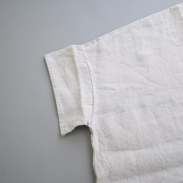 天日干ししたような、素朴でナチュラルな風合いが魅力のフレンチリネンキャンバス生地を使用した、半袖のワイドプルオーバー。ボートネックのデザインで、首まわりをすっきりと見せてくれる一枚です。程よいハリと通気性を備えた上質なリネン素材は、着るほどに柔らかくなり、肌になじむ心地よさ。ゆったりとしたシルエットで風通しも良く、春夏のデイリーコーデにぴったりです。