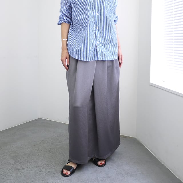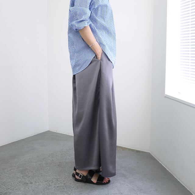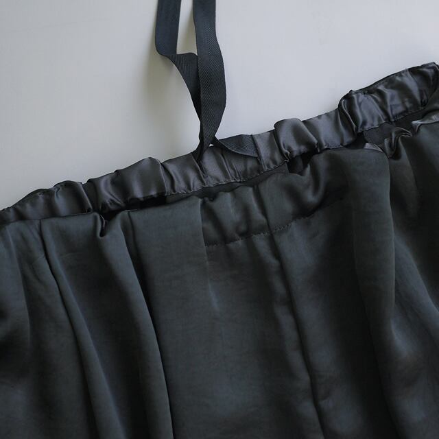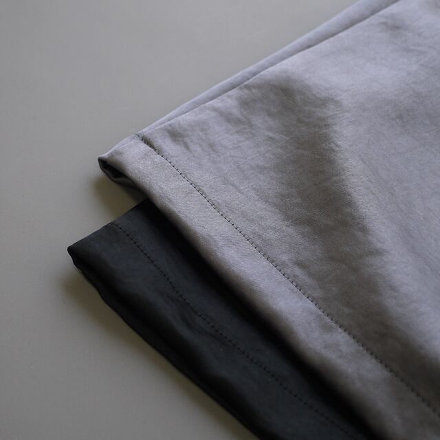 ウエストは内側の紐で調整できるため、お好みのフィット感で着用いただけます。落ち着いた雰囲気のグレーとブラックの2色展開。