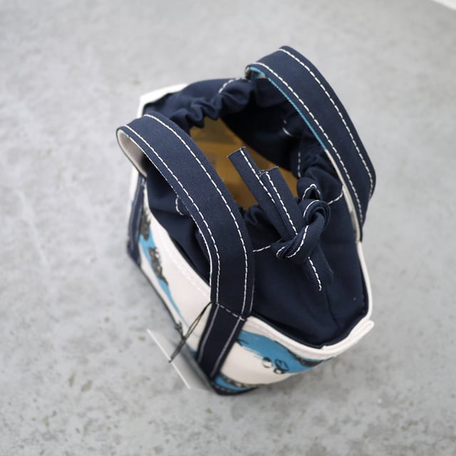 お財布や携帯など必要最低限の持ち物が入るミニサイズのトートバッグ。袋口には巾着が付いているので、荷物を多めに入れても安心して使えます。