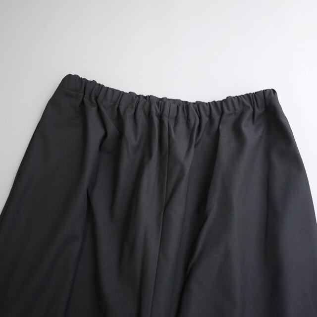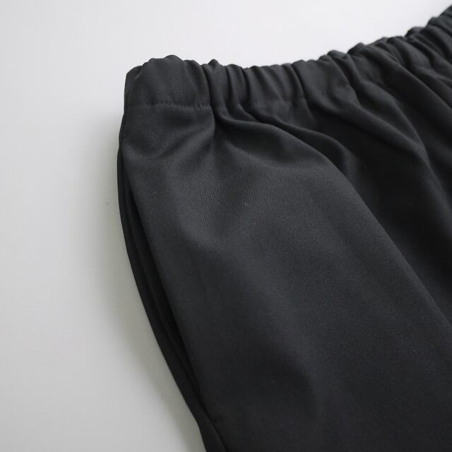 ゆったりとしたワイドシルエットが気になるレッグラインをカバーし、スタイルアップ効果も期待できます。さらに、シワになりにくいので、長時間座っていても美しいシルエットをキープ。ウエストはゴム仕様でリラックス感がありながら、フロントはすっきりとしたデザインに仕上げられています。