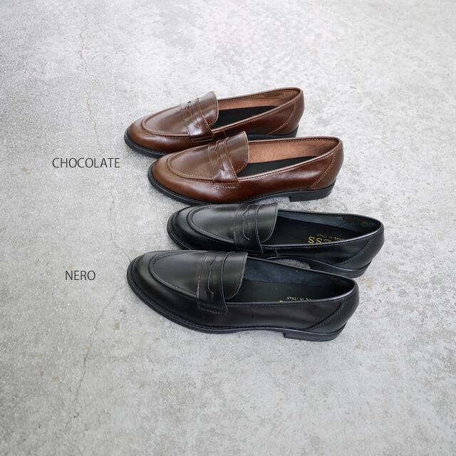 大人らしい上品な足元を演出してくれるフラットソールのコインローファー。すっきりとしたフォルムが美しく足元をスマートに見せてくれます。
