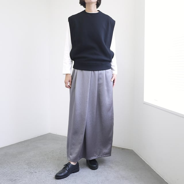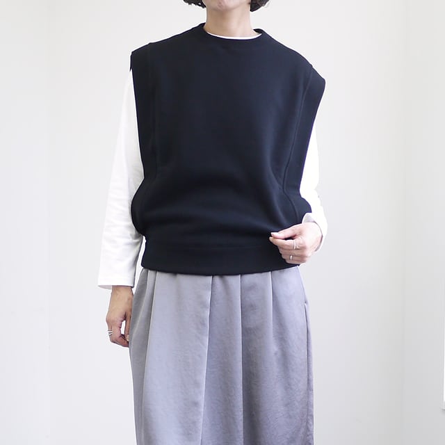 ふっくらとした上質なスウエット素材を使用した裏毛ベスト。柔らかく肌触りの良い素材を使い、空気をはらんだような立体的な風合いが魅力。大きく開いたアームホールが抜け感を演出し、レイヤードスタイルを軽やかに楽しめます。
