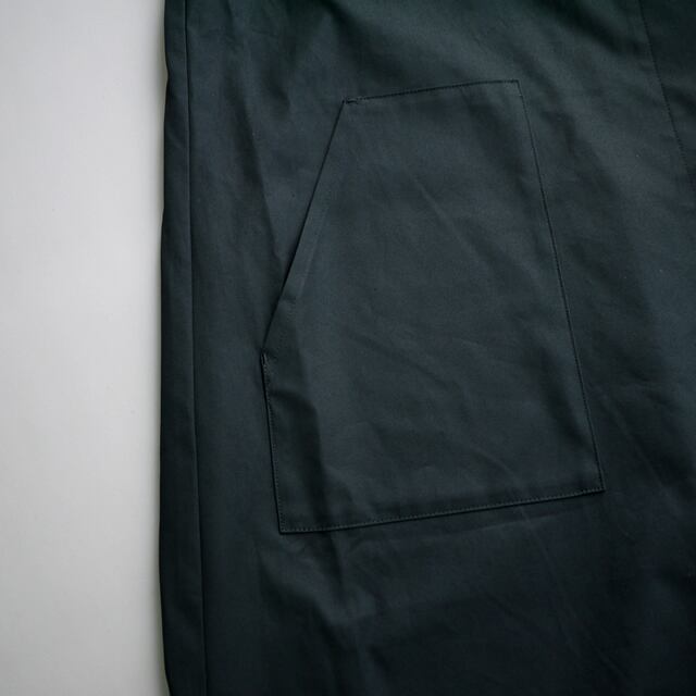 生地には程よい光沢とハリ感が特徴のコットンツイル素材を使用。ワークウェアの丈夫さがありながら、上品な雰囲気も持ち合わせています。カジュアルな日常使いから、少しきちんと感を出したい日にも。