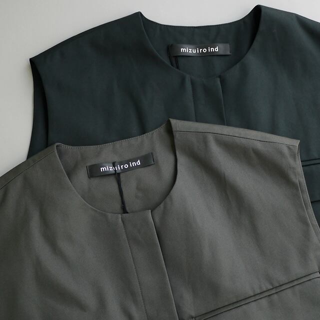 mizuiro ind(ミズイロインド) ポケット付きクルーネックロングジレ[3-250060]