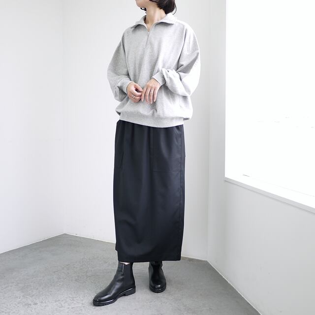 ゆったりとしたシルエットと、デザインシームが特徴的なハイネックのロングスリーブスウェットシャツ。ハーフジップファスナーがアクセントになっているので、ジッパーを上まで閉めてハイネックとして、また少し開けて襟のように見せても、これ一枚で違った表情を楽しめます。
