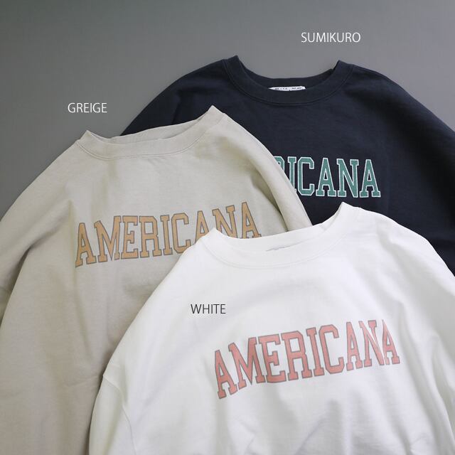 dailyであり、timelyであり、simpleでoriginalである事。そしてhumorに溢れている事。目立ち過ぎる事無く、人に町に馴染むデザインを心がけてデザインされるブランド、Americana(アメリカーナ)。アメカジをベースに、女性らしくソフトでスムースなデザインはアメリカーナの基本スタイルです。生地には特別なこだわりを持ち、殆ど全ての商品において生地から丁寧に国内生産されています。アメリカやヨーロッパの古き良き時代の洋服をモチーフに、古着では表現出来ない形を現代のスタイルに表現したTシャツやパーカーは特に人気があります。大人の女性の洗練されたカジュアルスタイルをアメリカーナで体感してください。