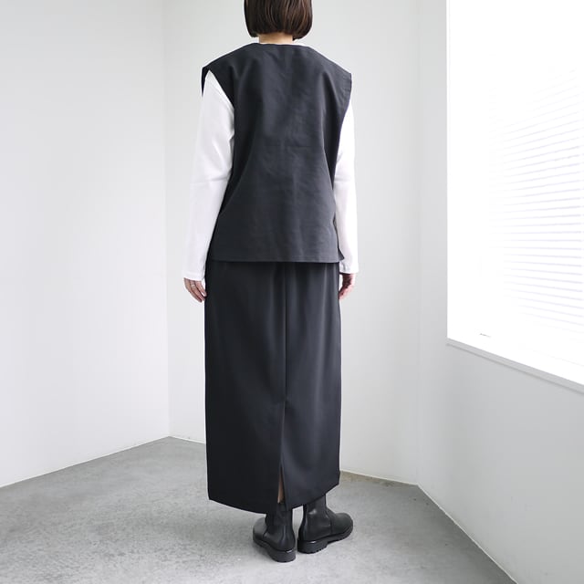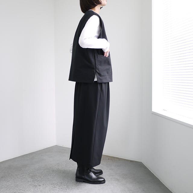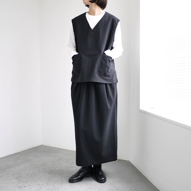 しっかりとしたハリ感のあるモールスキン素材を使用したVネックベスト。両サイドにポケットを配し、サイドにはスリットが入っています。保温性もあり、レイヤードで秋冬コーディネートの幅が広がるおすすめのアイテムです。