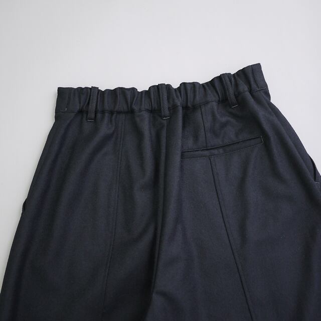無駄な装飾を削ぎ落とした、ミニマルなワイドイージーパンツです。ゆとりのあるサイズ感で、リラックスした穿き心地を実現。ウエストバックにゴムを配したイージー仕様なので、快適ながらもすっきりとした印象で着用いただけます。