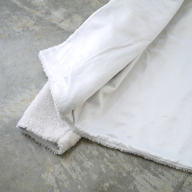二重構造で暖かく、軽い着心地でさっと羽織りやすいのが特徴。中にニット素材を合わせれば、年内はアウター代わりにもなる保温性を備えた、気負いなく羽織れるアイテムです。
