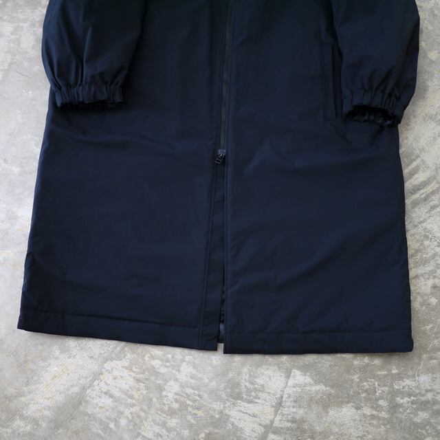 フロントは前中心ジップで開閉しやすく、両脇にはすっきりとした片玉縁ポケットを配置。総裏仕立ての裏地にはキルティングが施され、中綿には三菱ケミカルの高機能素材コアブリッドを採用。このコアブリットは太陽光による発熱性能がありとても暖かく薄くて軽いという優れもの。しっかりとした暖かさを提供し、寒い季節も快適に過ごせる一着です。