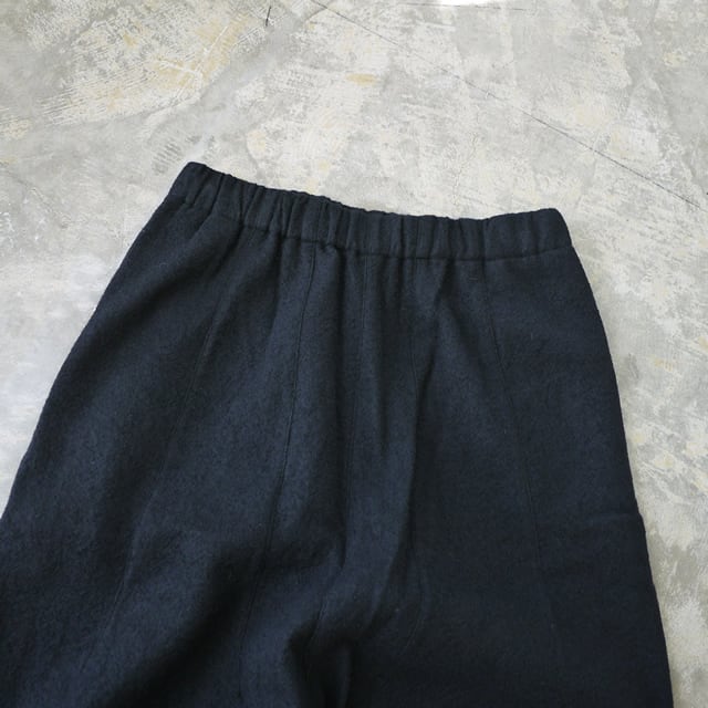 暖かみのある素材感が印象的なロークロスのイージーパンツです。素材には縮絨をかけたような面持ちのウール100%を使用。ふっくらと暖かみのある素材感と、膨らみのある肉感が特徴的です。