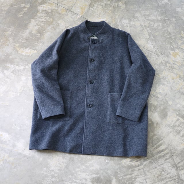 ウールとナイロンを混紡したフランネル生地に、表面を軽く毛羽立たせるナッピング調の起毛加工を施した、中肉厚で温かみのある素材を使用したシンプルな3/4(スリークォーター)コートです。