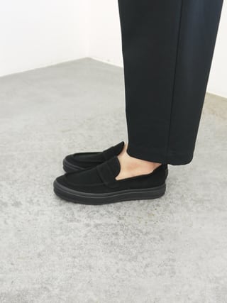 パイピングのモカシン仕様が特徴のローファータイプ。素材には上質なコットンスエードを使用しています。装飾を抑えたアッパーにヴァルカナイズ製法のソールを合わせることで落ち着いた佇まいの中に個性を感じさせる一足です。