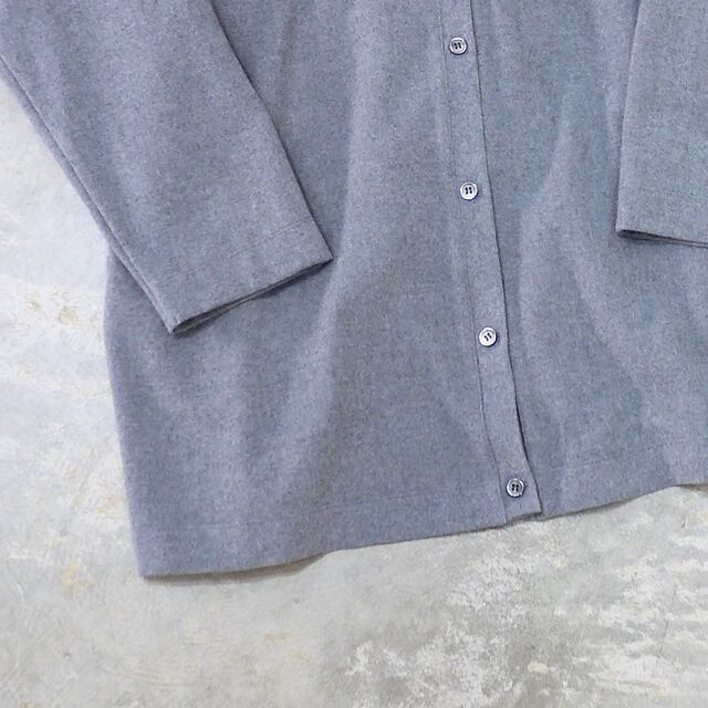 微起毛で温かみのある生地を使用した、チュニック丈のVネックカーディガンです。光沢感のある柔らかな素材が上品で、トラッドな雰囲気を演出します。首の後ろまで続くVネックデザインがさりげないポイント。ドロップショルダーと落ち感のあるゆったりとしたシルエットで、体のラインを拾いすぎずリラックスして着用いただけます。