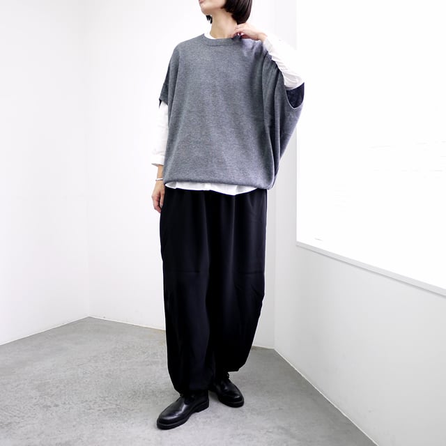 上品な面持ちのハイゲージニットを使用した一着で、ゆったりとしたアームデザインとコクーンシルエットが特徴的。ワンピースやシャツ、カットソーなど、様々なアイテムとのレイヤードスタイルを上品に楽しんでいただけます。