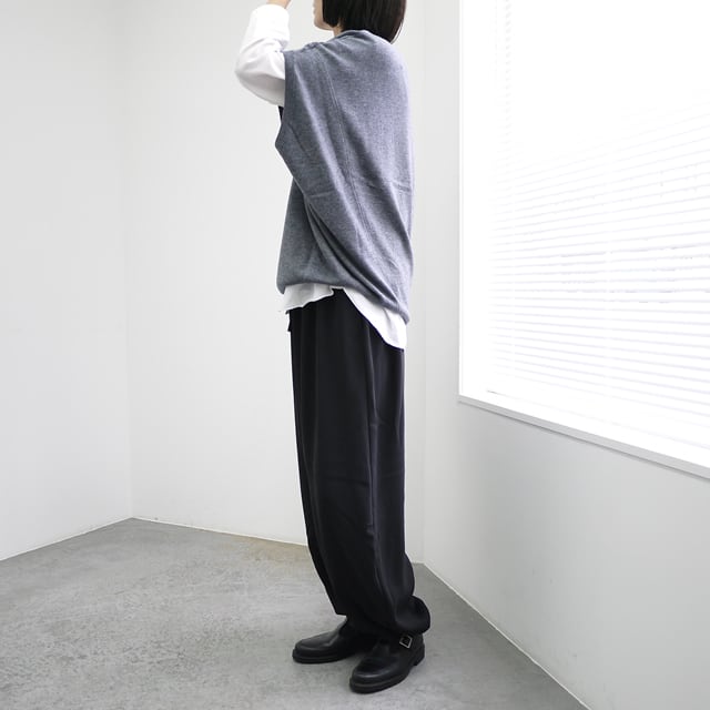 ふんわりとした丸みを感じさせるバックスタイルシルエットが特徴の、女性らしいコクーンワイドベストです。
