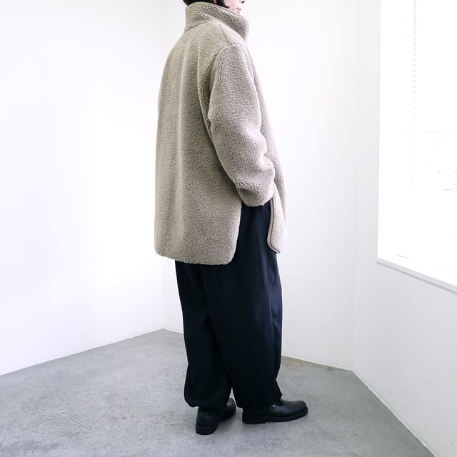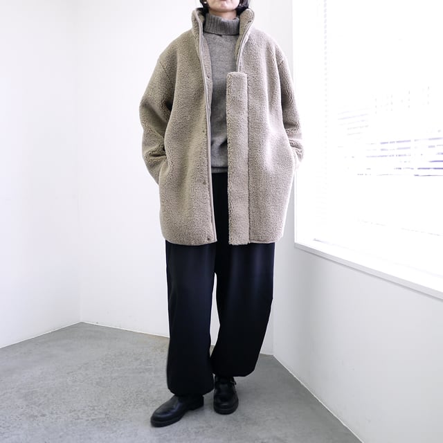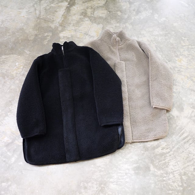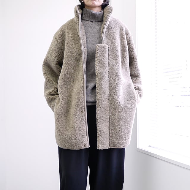 ふんわりとしたハイネック仕様で首元はもちろん、裏地付きでとても暖かいボアブルゾンです。ロング丈でしっかり身体を包み込み、フロントジップとスナップボタンで着脱もスムーズ。