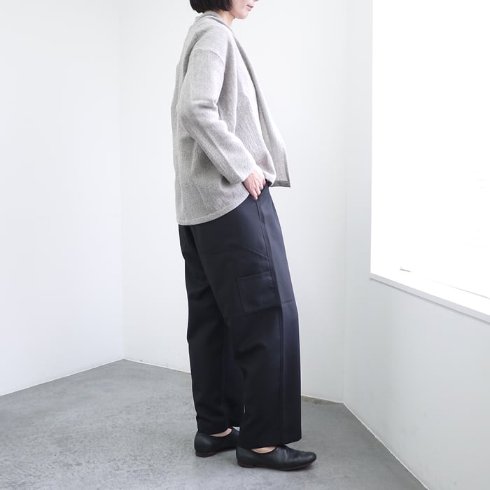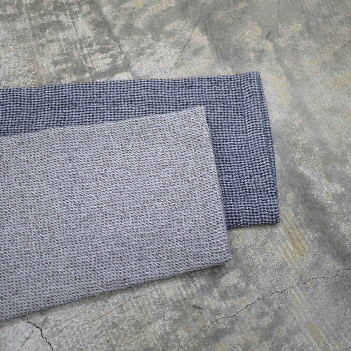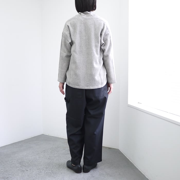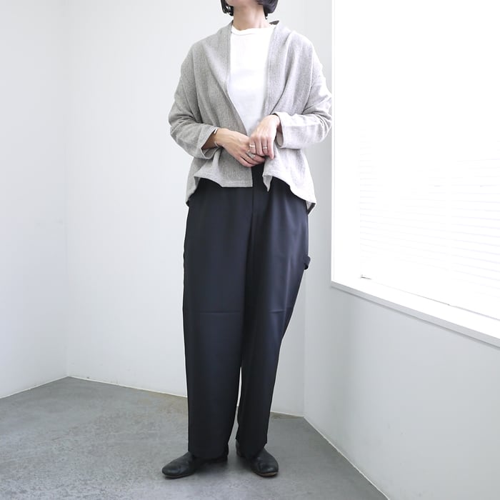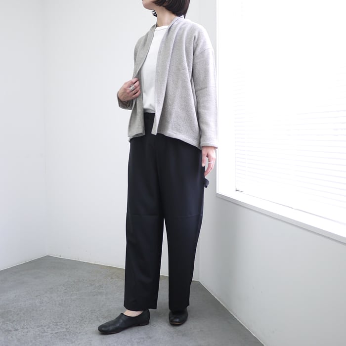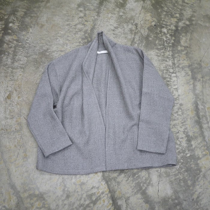 縦、横合わせて3色の糸から織り上げられた、豊かな風合いのウール生地を使用したボタンレスカーディガン。絶妙な配色と生地の凹凸感が、深みのある奥行きを生み出します。