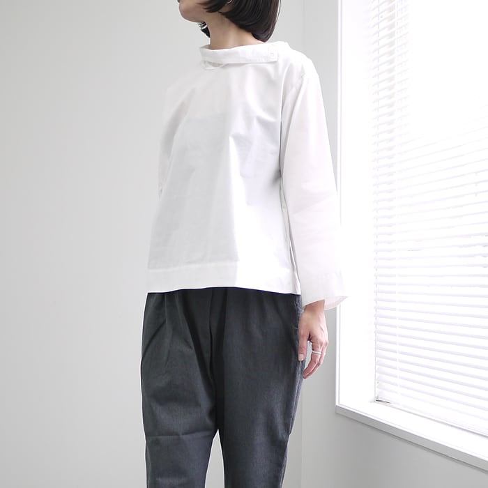 シルエットの変化を楽しむ。サイドボタンのハイネックブラウス