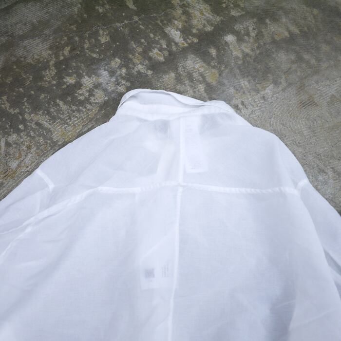 肩のラインを美しく見せるジャストなサイズ感と、端正な台襟付きのシャツカラーが特徴のヨークシャツです。素材には、スパンポリエステル糸を甘く平織りにした、吸水・速乾性に優れた生地を採用。ポリエステル製品染めを施すことで、独特のソフトな風合いを引き出し、驚くほど軽やかで通気性の良い清涼感のある一着に仕上げています。