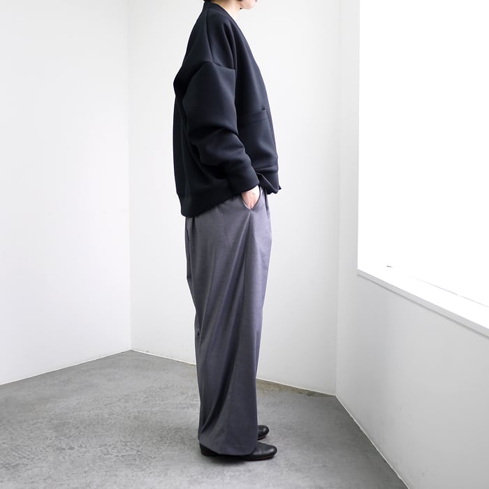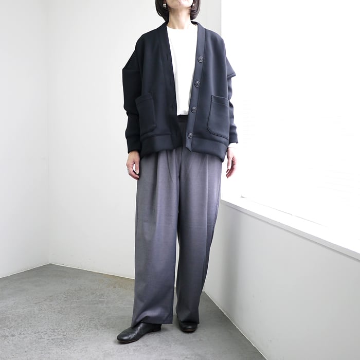 ゆったりとしたサイズ感で、身体を優しく包み込む軽快な着心地のVネックカーディガンです。素材には、独特の膨らみとハリ感を兼ね備えたダンボール素材を採用。シワになりにくく、常に端正で綺麗見えする質感をキープします。見た目の上品さに対し、驚くほど軽くストレッチ性にも優れているため、日常のあらゆるシーンで気軽に羽織れる一着です。