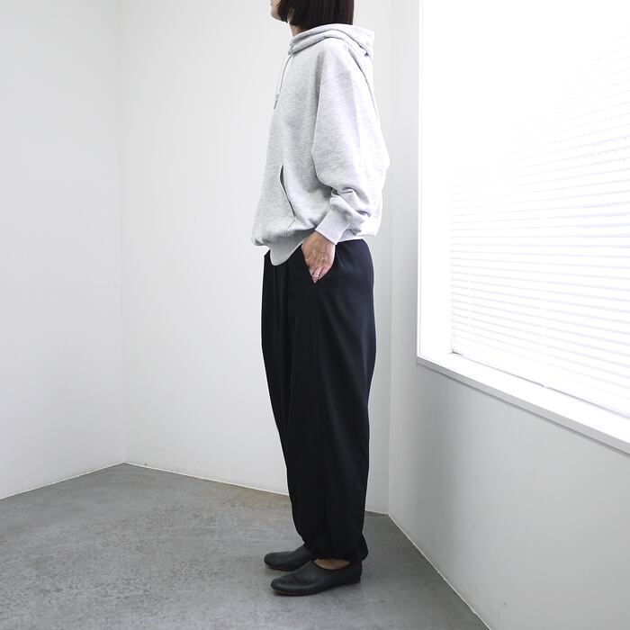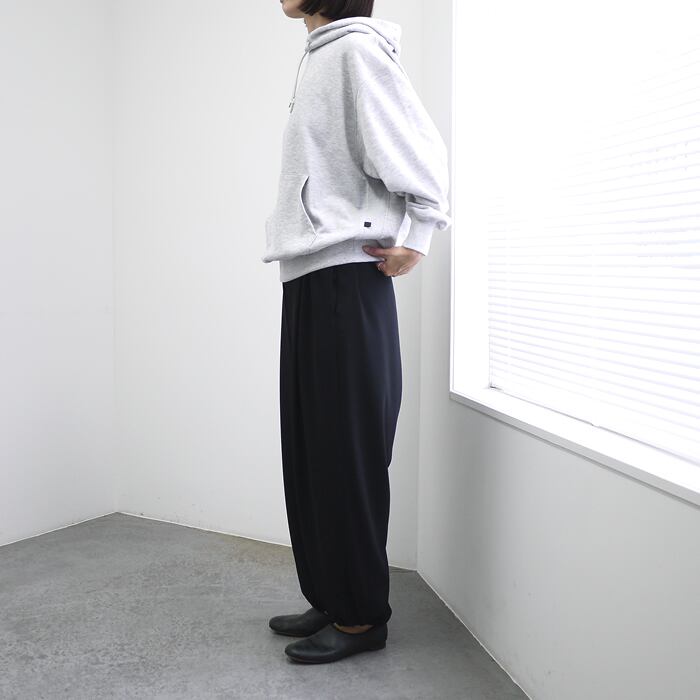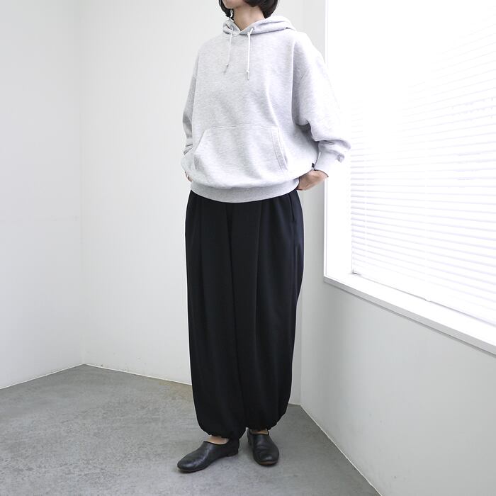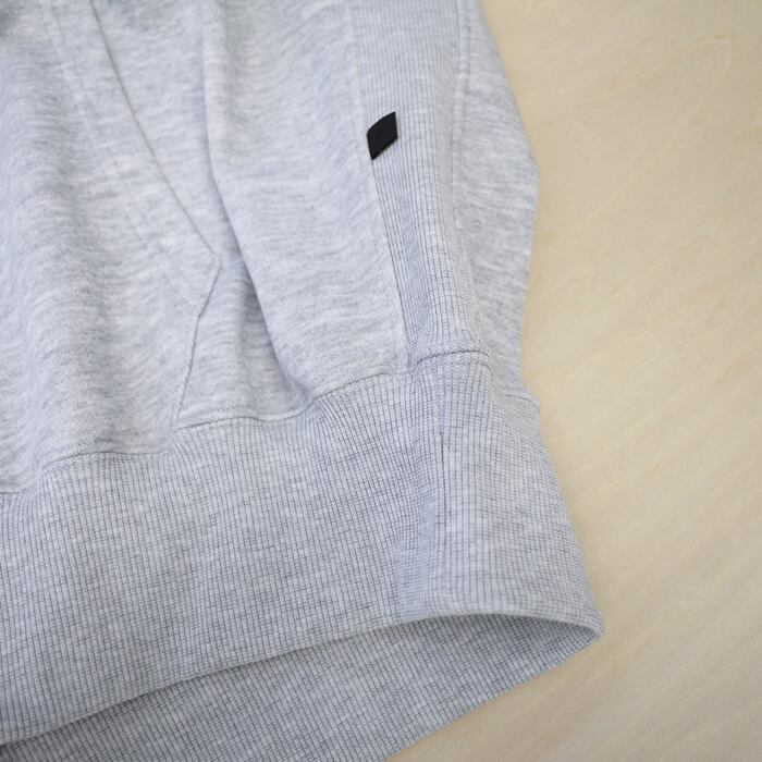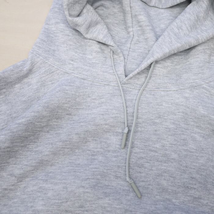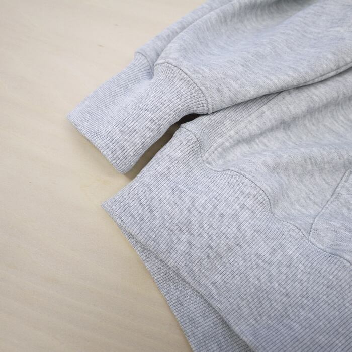 ポリエステルスパン糸を使用し、どっしりとした重厚感がありながらも、驚くほど軽やかな着心地を実現したヘビーウェイト裏毛のフーディーです。見た目は風合い豊かな綿タッチでありながら、ポリエステル素材ならではの「色落ちしにくく、型崩れしにくい」という強みを兼ね備えています。綿素材のような経年変化が少ないため、お気に入りの色合いを長く美しく保てるのがこの素材の真骨頂です。