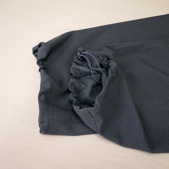 機能面では、内側にメッシュの総裏ライニングを施すことで、肌離れを良くし、スポーティーで快適な着用感を実現。ウエストと裾にはドローコードを配しており、動きやすさの向上とともにシルエットの変化も楽しめます。さらに、小さなコインポケットをあしらうことで、クラシックな趣をより強調。洗練されたトラッドな印象を保ちつつ、現代のライフスタイルに寄り添う軽快さを兼ね備えた、ブランド渾身のボトムスです。