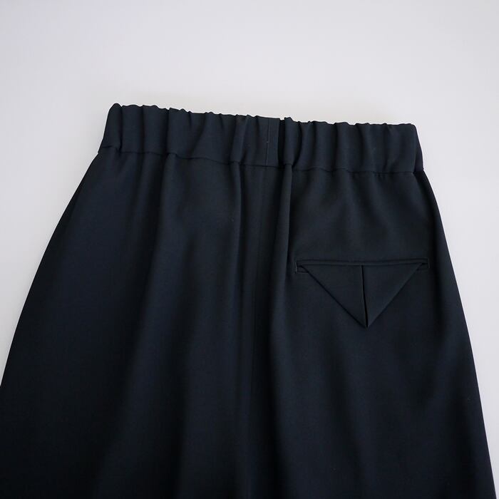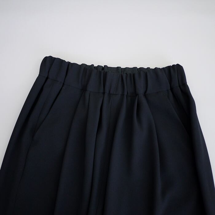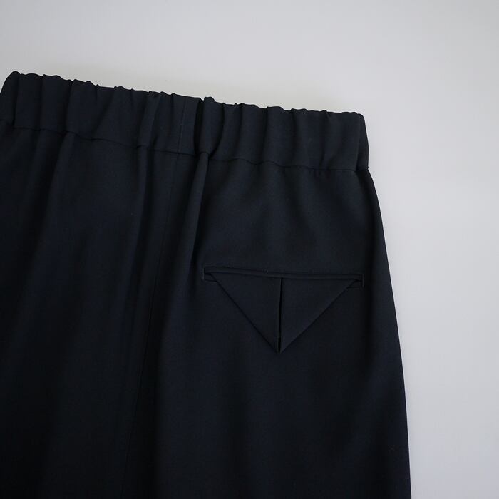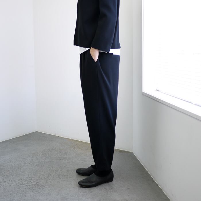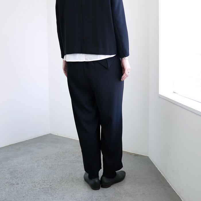 ドライな肌触りで軽快にお穿きいただける、アセテート&ポリエステルダブルクロスのイージーテーパードパンツ。シワになりにくい素材で、独特のドライな質感は適履き心地快適。ウエストは総ゴムにストリング紐のイージータイプで、ヒップと腿にゆとりを持たせたテーパードシルエット。着回しやすいベーシックなシルエットながら、フロントの2タックやヒップポケットの三角フラップなどディティールにもこだわったスタイリッシュなデザイン。オンオフ問わずにお使いいただけるシンプルなデザインは、同素材のジャケットとのセットアップも◎