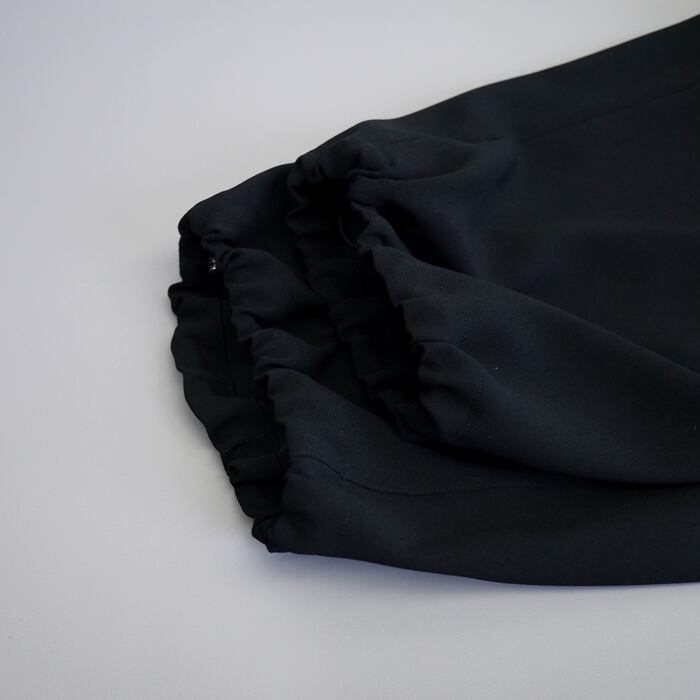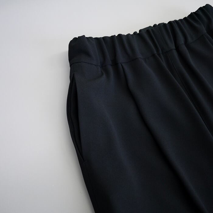 ユニークながら程よいゆとり感で履きやすいデザインです。オンオフ問わずにお使いいただけ、同素材のジャケットとのセットアップも◎