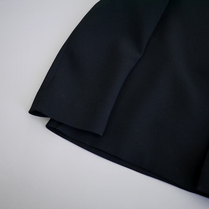 極細番手のアセテートとポリエステルを織り交ぜた、奥行きのある色合いの生地感が魅力のショート丈ジャケット。ドライな肌触りとシワになりにくい素材感は、シーズンを問わずにお使いいただける快適な着心地。適度な落ち感に加え、ストレスを感じない軽さも魅力の一つです。フロントにスナップボタンが1つだけついたシンプルな作り。フォーマルシーンにも普段使いにもお使いいただけます。同素材のパンツとのセットアップスタイルにも。
