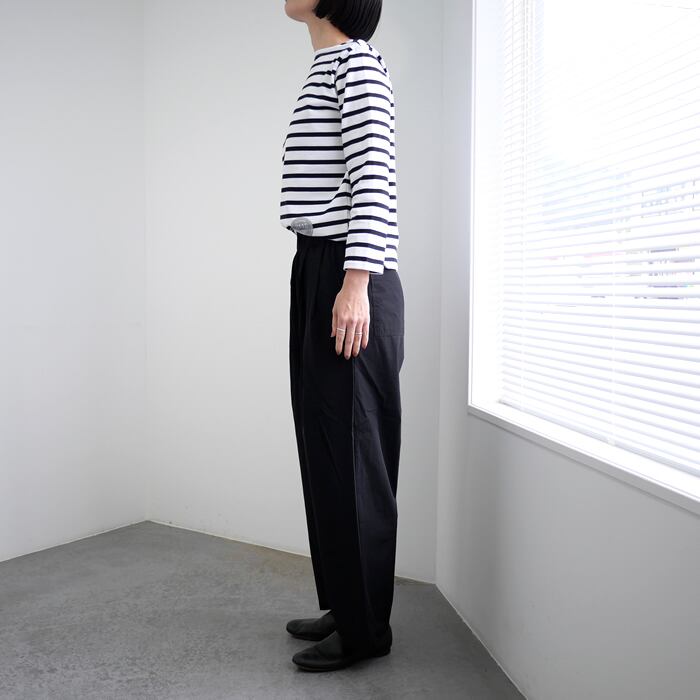 ブランドを代表するカットソーのベストセラー、BMBシリーズより、レギュラーフィットの端正な一着、LYMM(リム)。素材には、クリーンな表情が際立つ度詰めの天竺素材を採用。伝統的なバスクボーダーシャツの趣を残しつつ、時代に左右されることのないベーシックな美しさを追求しています。