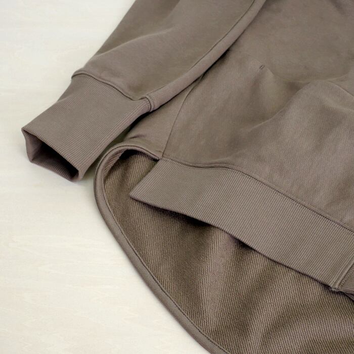 切り替えラインに沿って目立たないよう配置されたポケットは、機能性を確保しながらも、デザインを邪魔しないミニマルな仕上がりに。スウェット感覚で扱える裏毛素材は肌触りも良く、春の肌寒い時期から初夏の日差し除けまで、長いシーズン頼れる一着です。