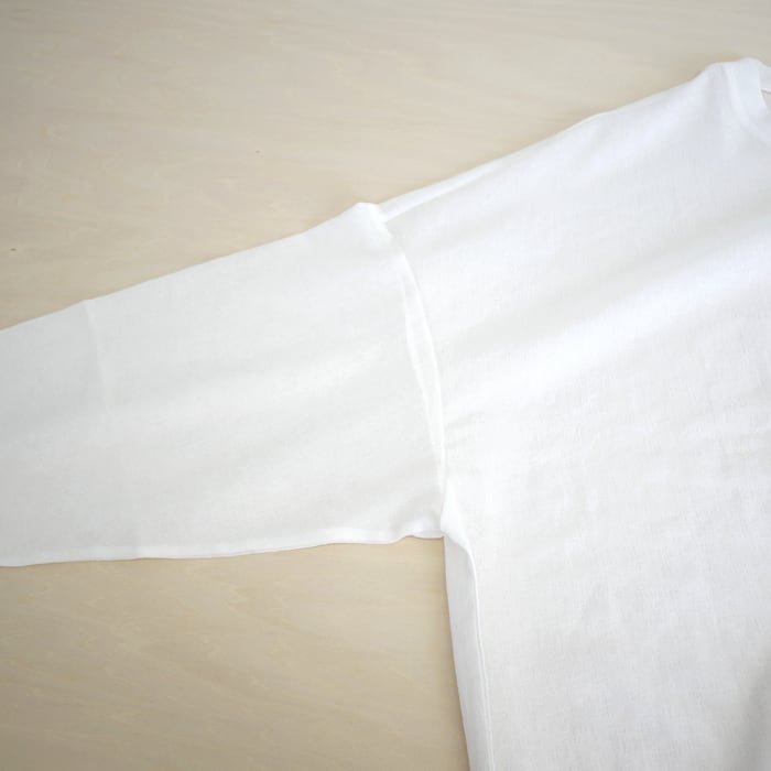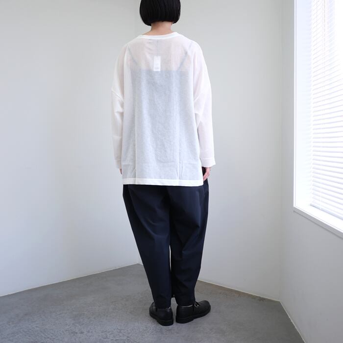 シルエットは、ゆったりとしたサイズ感に大胆な前後差をつけた、動きのあるデザイン。その奥行きのあるフォルムは、一枚着としてはもちろん、肌寒い時期には長袖カットソーとのレイヤードスタイルも美しく決まります。