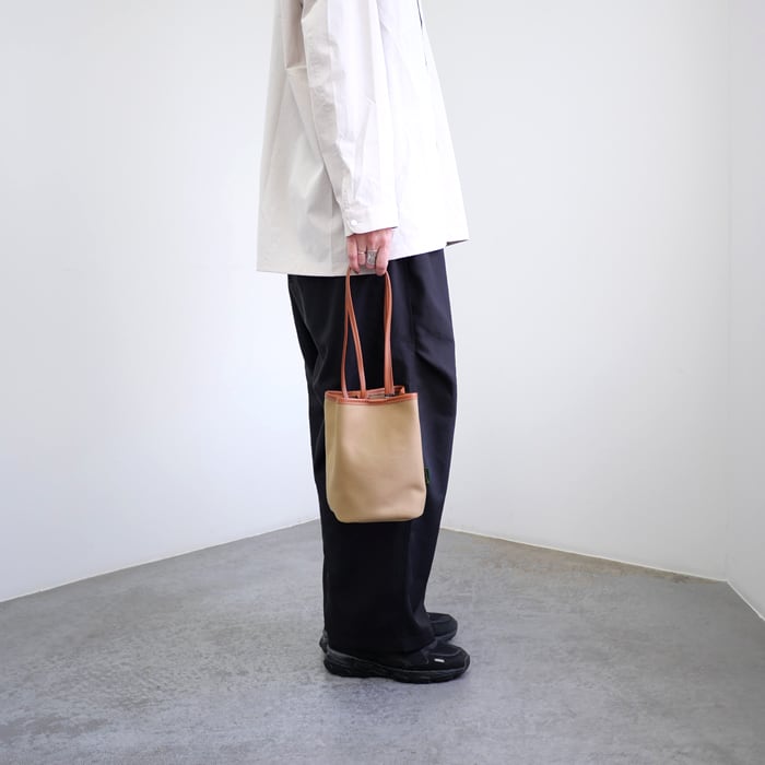 洗練された美意識と、現代のライフスタイルに求められる実用性。その両方を高い次元で融合させた、端正なフォルムの巾着型バッグです。