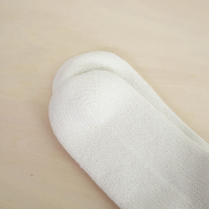 最大の特徴は、贅沢に使用されたシルク混の糸で編み上げられた、ふっくらと柔らかな質感。しっかりとした厚みがありながらも、シルク特有の優れた吸湿性と放湿性を併せ持つため、夏はさらりと、冬は暖かく、一年中蒸れを感じさせない極上の履き心地を保ちます。