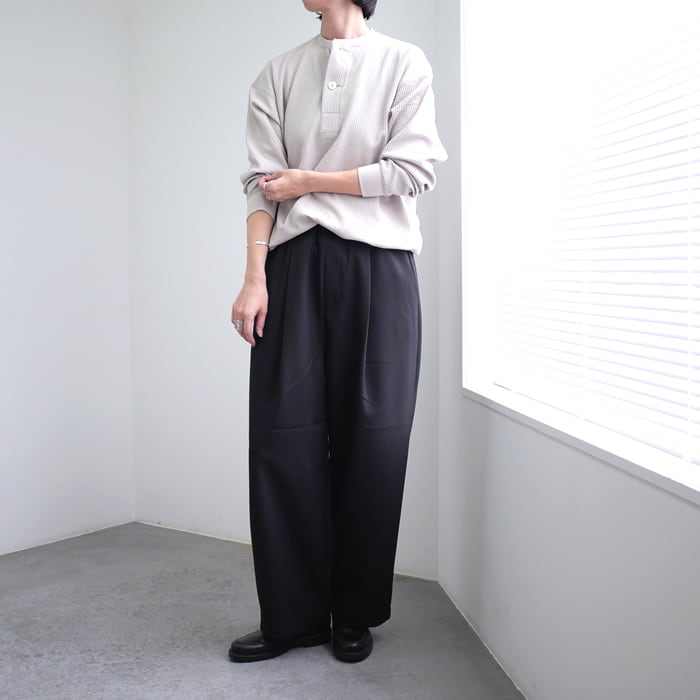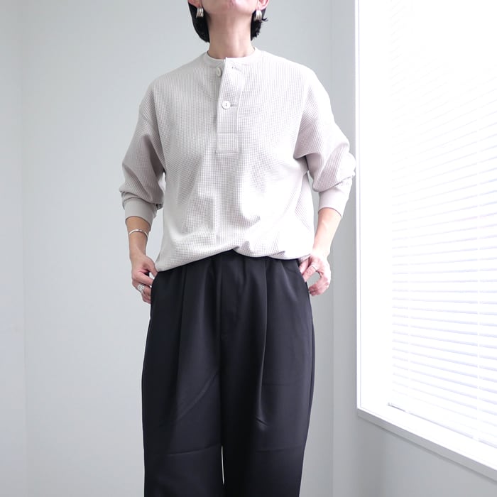 冬場の確かなインナーとしてはもちろん、その機能性と質感の高さから、春先から初夏にかけては主役のトップスとして。伝統的なヘンリーネックの無骨さと、最新素材の快適さが融合した、シーズンを越えて手放せなくなる究極の日常着です。