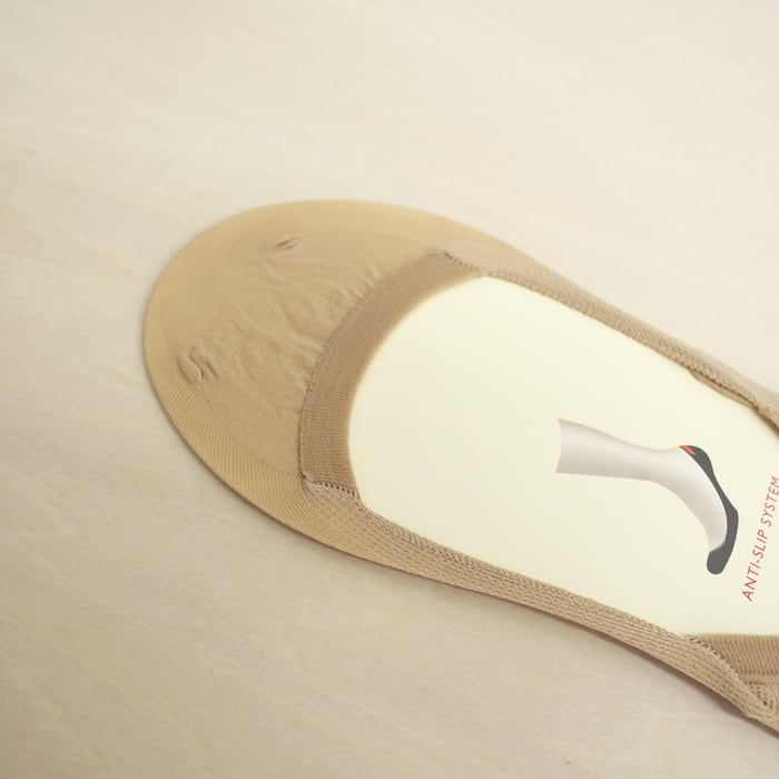 甲を極限まで浅く設計することで、バレエシューズやパンプスからも見えない完璧な隠れた名脇役としての役割を遂行します。履いていることを忘れるほどの軽やかさと、ストッキング素材特有の優れた通気性が、靴の中の蒸れを解消し、常にドライで清潔な状態を保ちます。