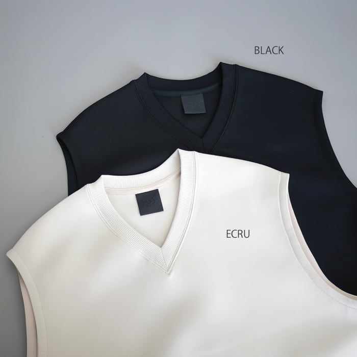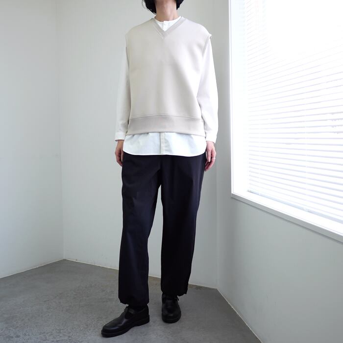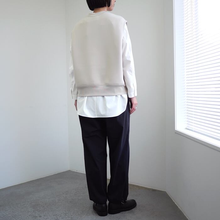 デザインは、レイヤードの可能性を最大限に引き出すため、あえて装飾を極限まで削ぎ落としたミニマルな仕上がり。洗練されたシンプルな佇まいは、シャツやカットソーなど合わせるインナーを選びません。