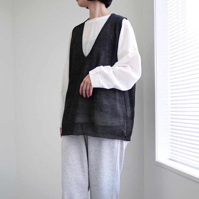 リネンのような清涼感を、軽やかなテープヤーンで。ワイドVネックベスト