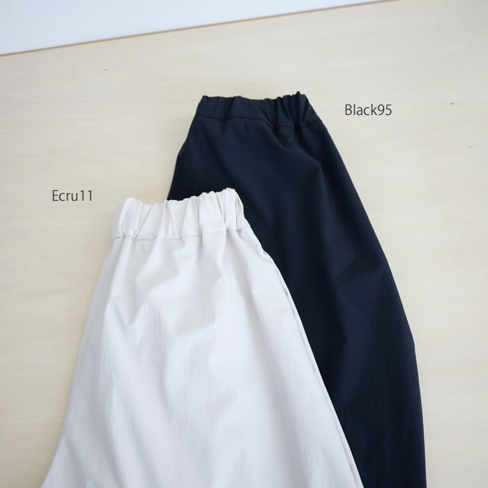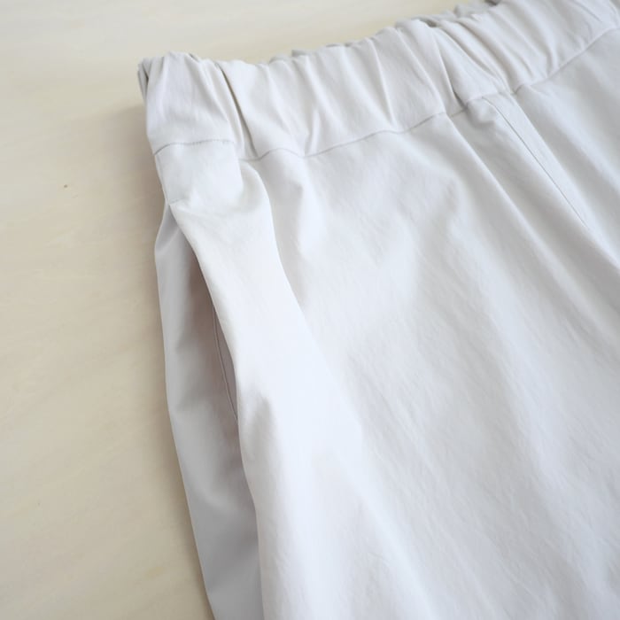 素材には、光沢を抑えたマットタイプライター地を採用。高密度に織り上げることで、淡い色合いでも透けにくく、一枚で安心して着用いただけます。ポリエステル100%でありながらコットンのようなナチュラルな質感を実現し、さらに驚くほどのストレッチ性をプラス。身体の動きにしなやかに寄り添う、ストレスフリーな穿き心地を叶えています。