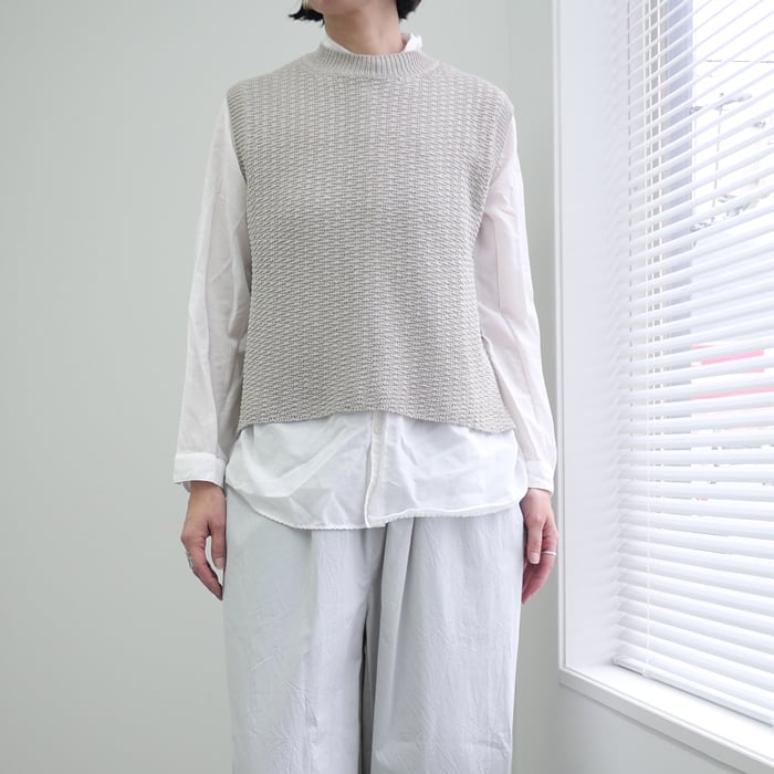 空気を通す、柄編みの奥行き。コットンリネン・クルーネックニットベスト